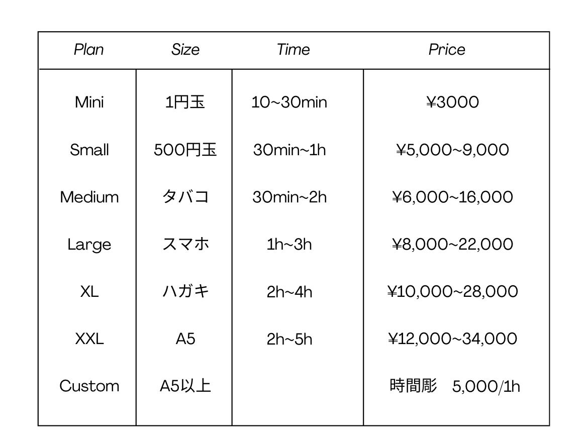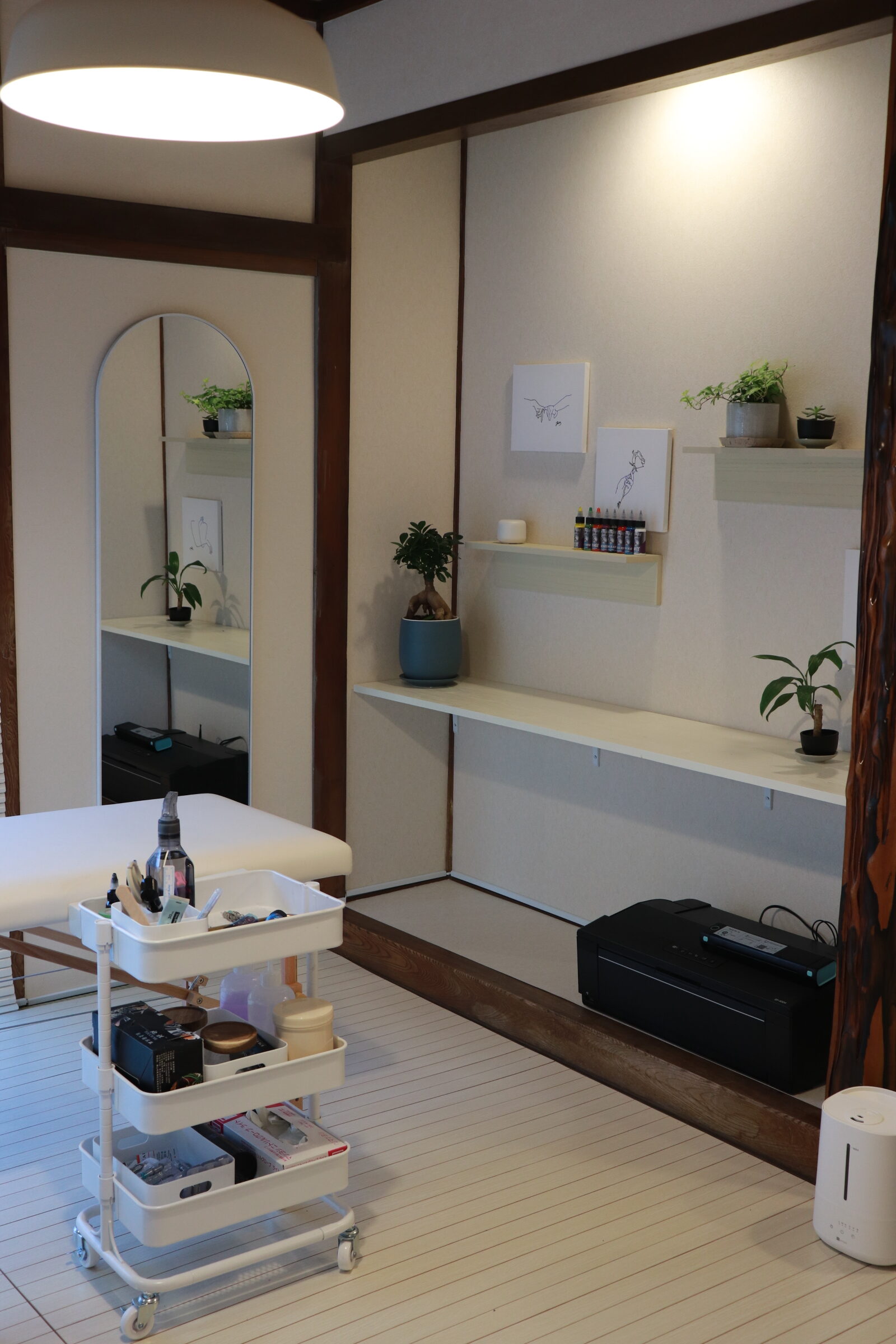 ご来店時に、アーティストと再度デザイン内容や施術場所の確認をしていただき施術に移ります。